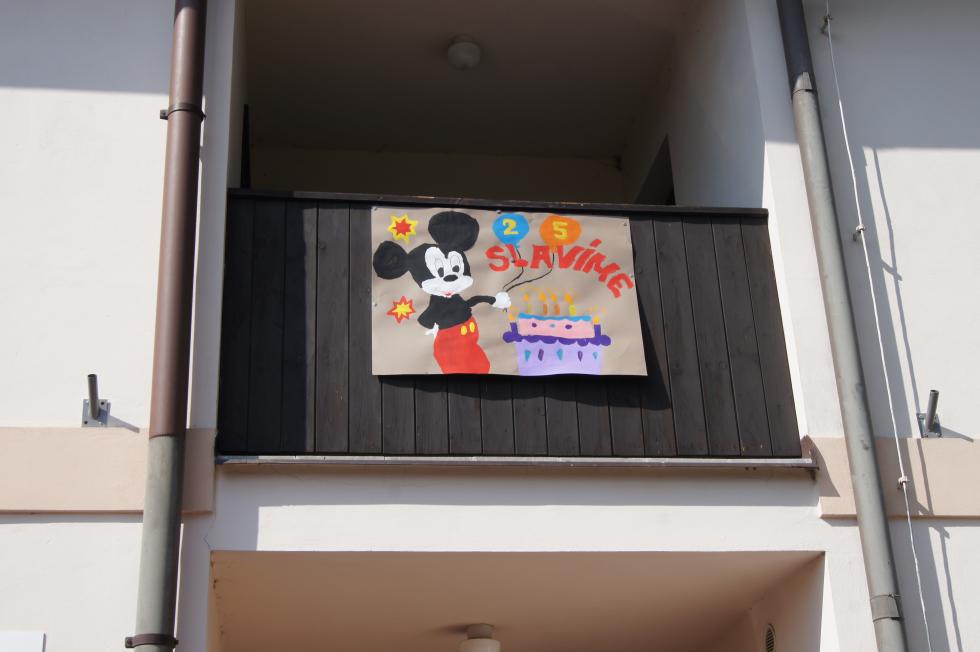 Veliké a moc milé překvapení si připravily naše pravidelné návštěvnice, které samy upekly dort k narozeninám ozdobený mimo jiné 25 svíčkami. Tento „táborák“ nebylo vůbec snadné sfouknout a dostat se tak k výbornému zákusku. Předání proběhlo na konci programu a v naprostém utajení – nikdo z nás netušil, co se chystá.