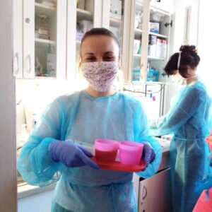 Proto jsme od počátku výskytu nemoci na území republiky realizovali a realizujeme množství opatření, abychom co nejvíce ochránili nejen naše klienty, ale i zaměstnance. Z rozhodnutí Vlády jsme zcela uzavřeli služby denních stacionářů a sociálně terapeutických dílen. Klienti pobývají doma se svými rodinami a my jsme s nimi v pravidelném kontaktu, ať už po telefonu nebo třeba na Skypu. Ani pro ně není situace jednoduchá, proto jim na dálku poskytujeme veškerou možnou podporu. Klientům dílny v případě jejich zájmu také posíláme „práci na doma“, kterou měli v dílně nedokončenou a mohou se tak ve volných chvílích doma věnovat tomu, na co byli ve službě zvyklí. Pracovníci dílny se zapojili do šití roušek pro naše vlastní potřeby, ale i pro potřeby dalších zařízení sociálních služeb na území našeho kraje.