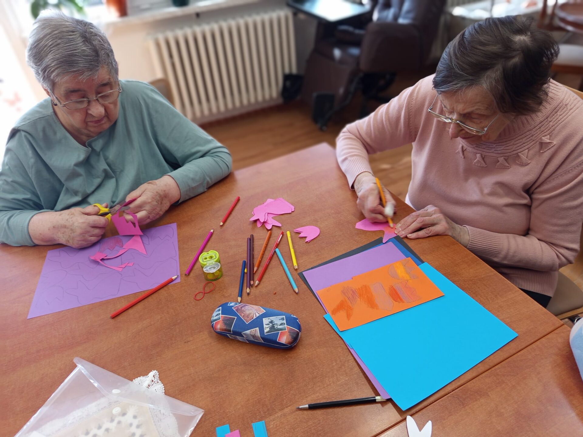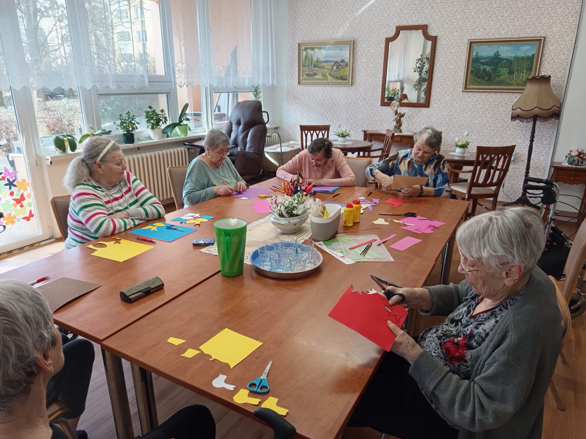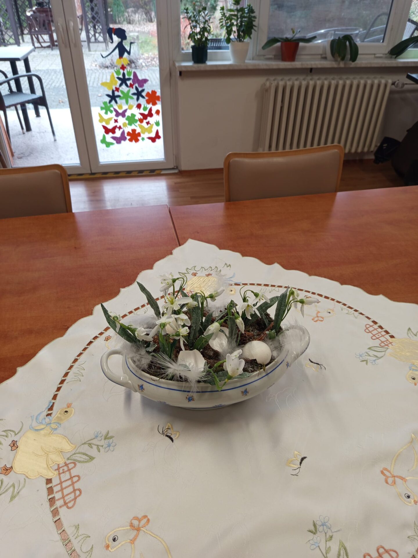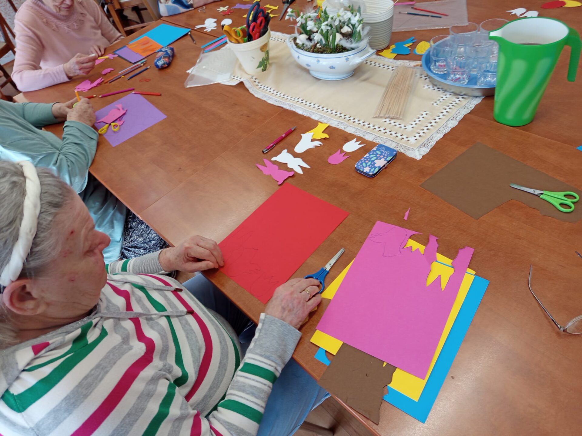 Naši klienti nezahálí a s chutí se pouštějí do velikonočního tvoření. Kromě velikonočních příprav jsme si jako obvykle našli čas i na cvičení, zpívání a pečení. Velký zájem vzbudila také přednáška o historii brněnských hospod a restaurací.