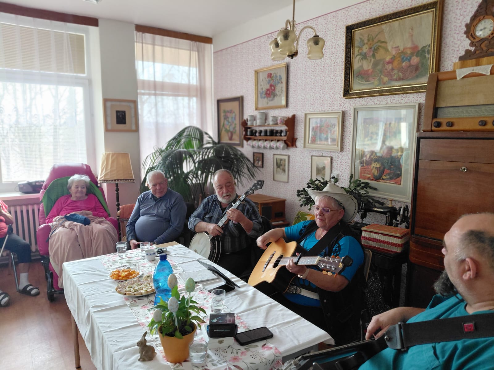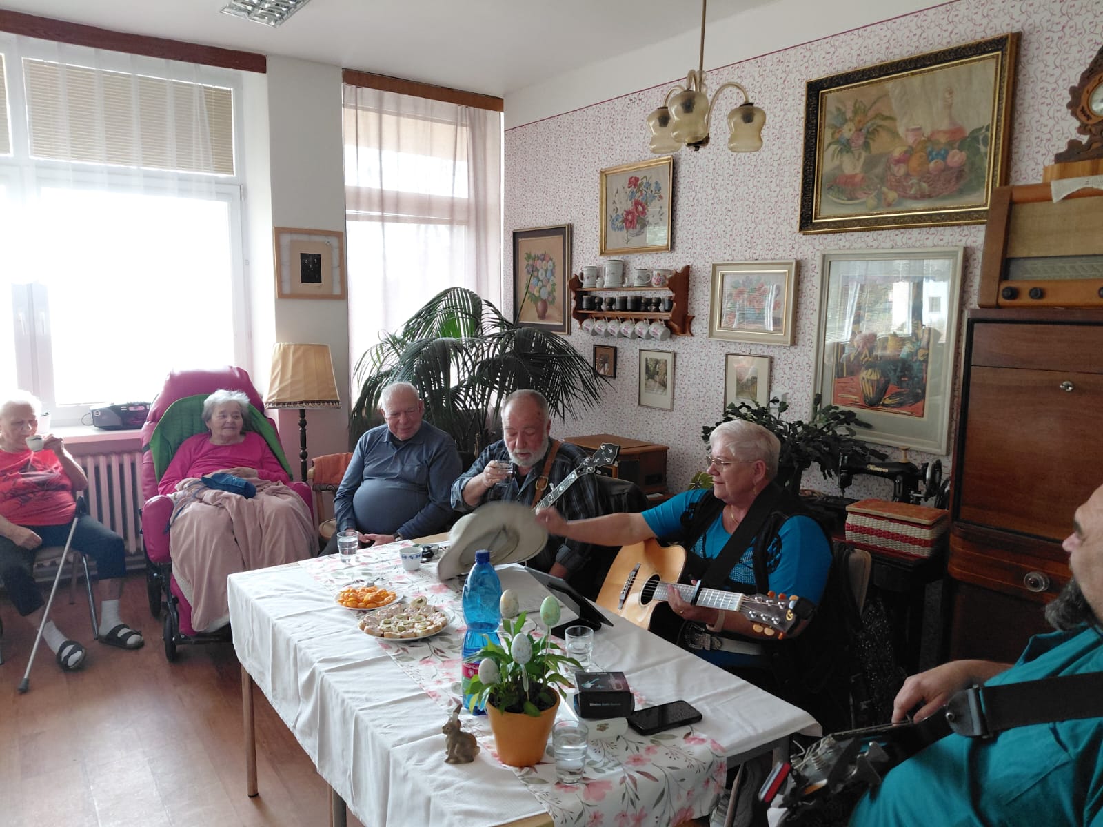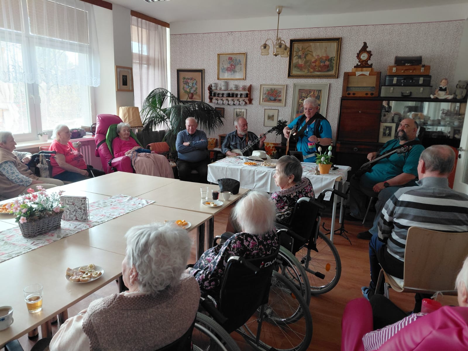 V našem domově v Bohunicích jme opět přivítali oblíbenou country kapelu Eny Band. Zpívaly se známé písničky z našeho mládí, nechyběl smích, příjemná atmosféra ani dobré jídlo a pití.