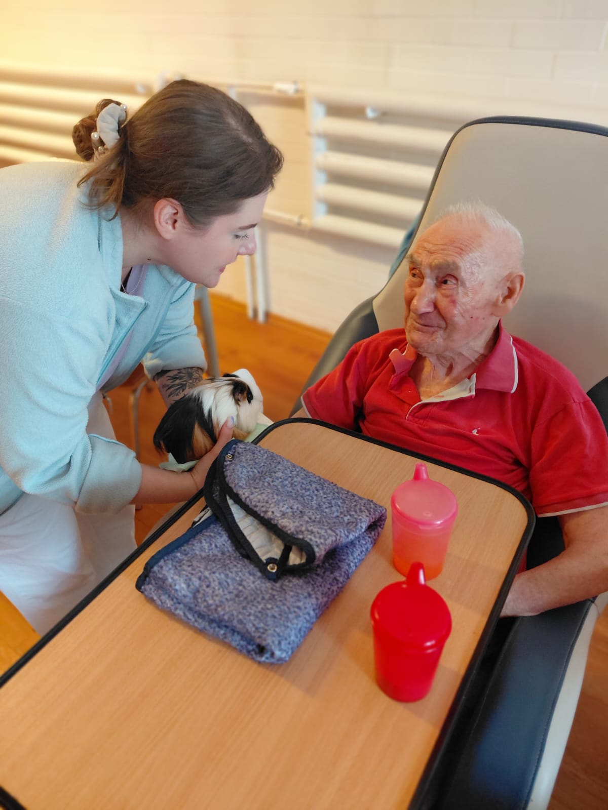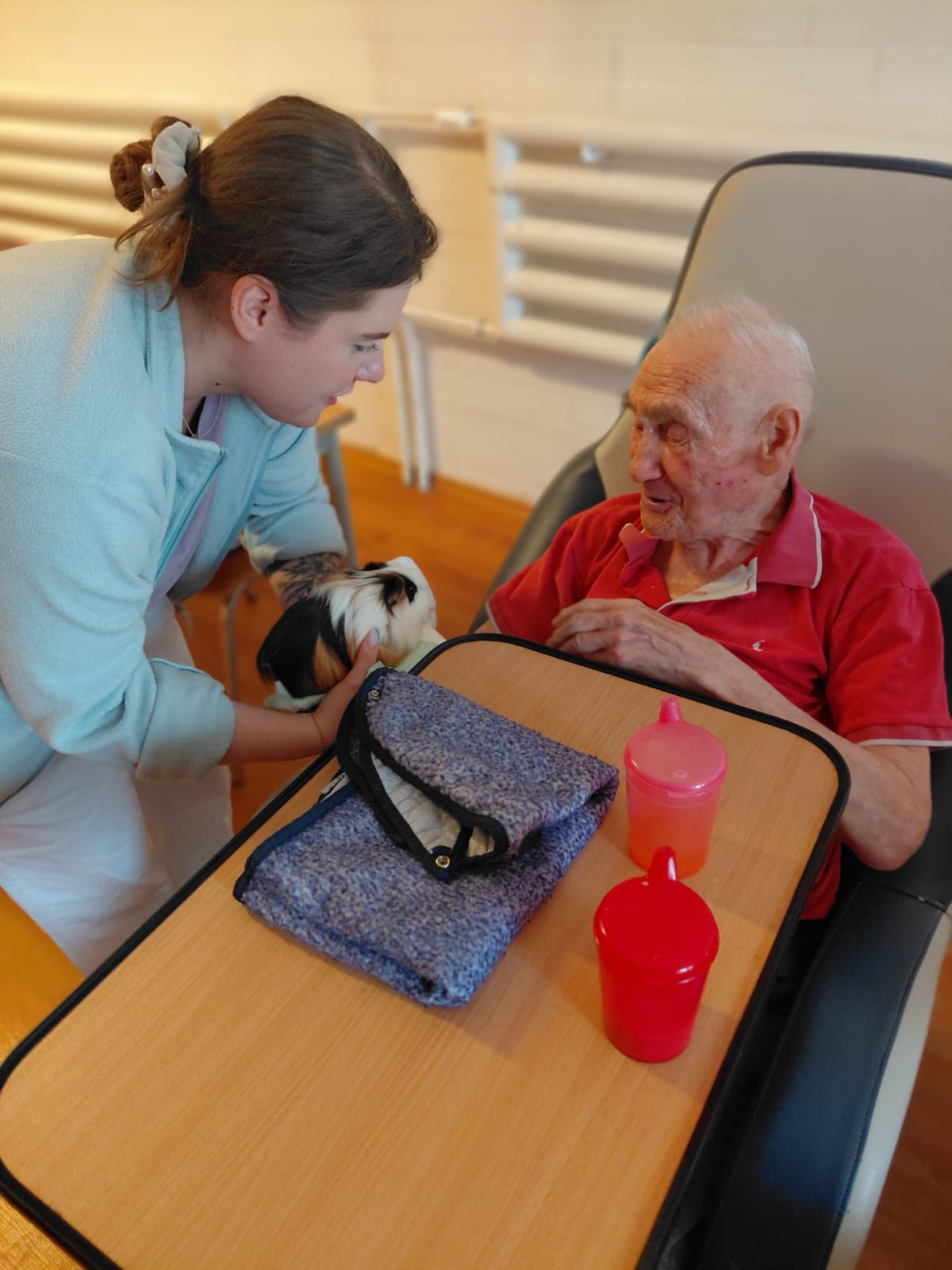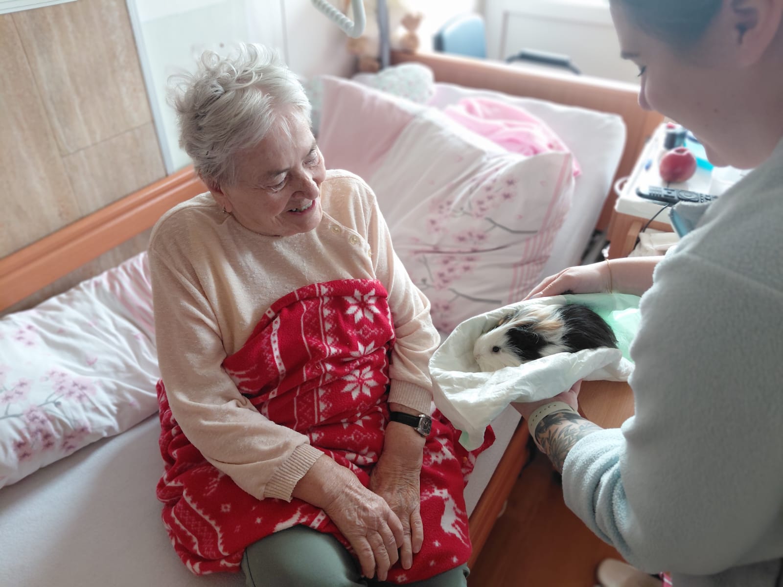 Nedávno jsme v našem domově v Bohunicích přivítali dvě nové nájemnice – králíčka a morče. Spolu s nimi k nám přišla radost, úsměvy a také milé vzpomínky na mládí, kdy se o podobná zvířátka starali i naši klienti.