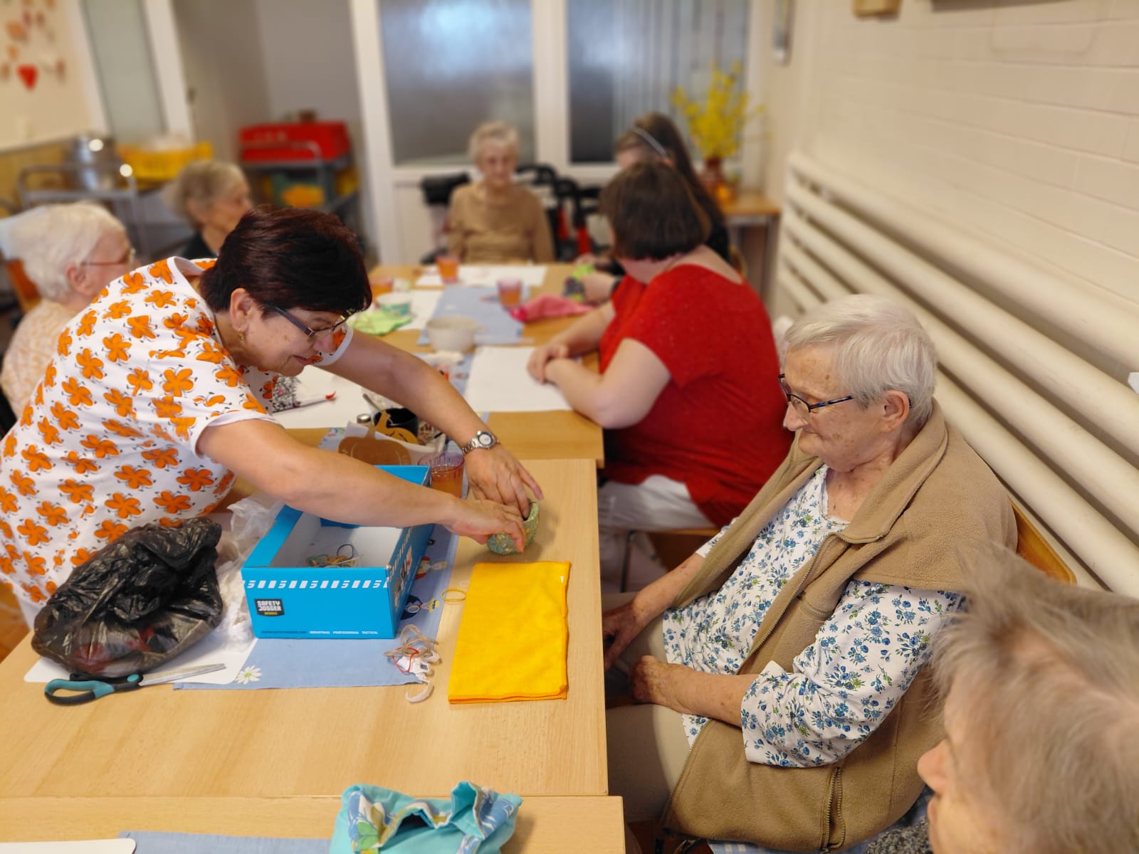 Nástup jara a blížící se Velikonoce nás inspirují k tvoření velikonočních zajíčků a slepiček. Kreativní chvíle si užívají nejen naši klienti, ale i personál.