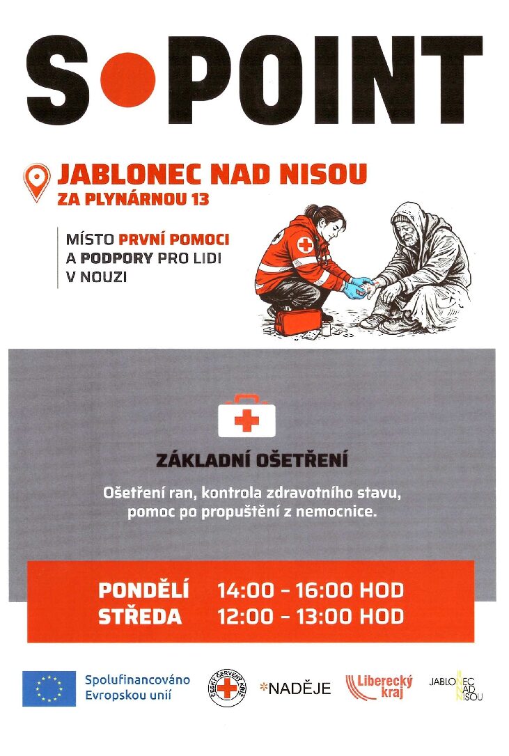 Každé pondělí je zdravotní pomoc dostupná přímo u střediska Domu Naděje v Jablonci nad Nisou, Za Plynárnou 13.