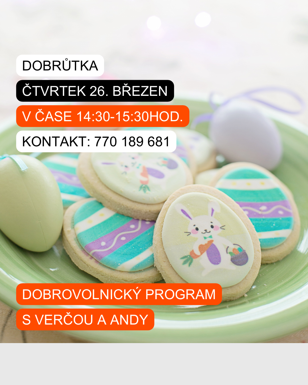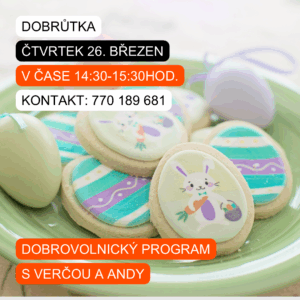 Už ve ČTVRTEK se můžete opět těšit na naše dvě dobrovolnice Verču a Andy🙋♀️🙋♀️, které si pro Vás připravily sladké tvoření! 🍪No není to bezva? Spojení zábavy a mlsání! 🥳
