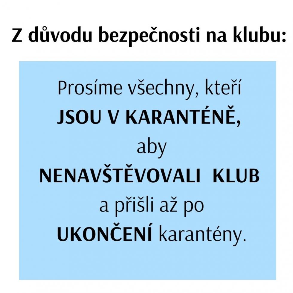 Prosíme všechny, kteří mají být v karanténě, aby do klubu přišli až po ukončení karantény.