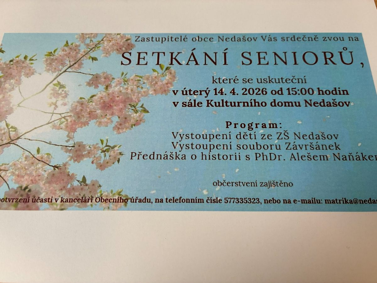 Děkujeme zastupitelům obce Nedašov za pozvání našich klientů na odpolední Setkání Seniorů v místním kulturním domě.