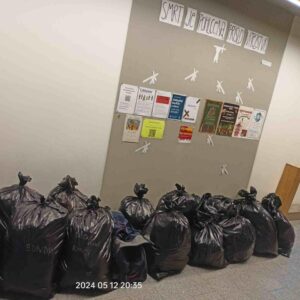 Rádi bychom poděkovali každému dárci i všem, kteří se na sbírce jakýmkoliv způsobem podíleli. Vybralo se neuvěřitelných18 pytlů oblečení a bot, konkrétně pak 209 triček, 91 kalhot, 77 mikin a svetrů, 20 párů bot, velká taška ponožek a mnoho dalšího (pásky do kalhot, spacáky, bundy, kraťasy, atd.). Hned následující den jsme vše přijali v našem šatníku v denním centru U Bulhara, kde už oblečení i boty dále slouží našim klientům.