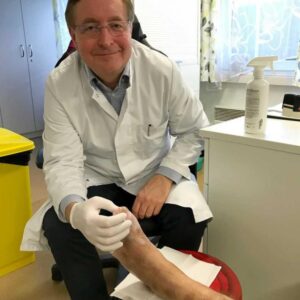 A horká novinka! Značně rozšířené mezi lidmi bez domova jsou i kožní choroby a proto máme velkou radost z toho, že nás před několika měsíci oslovil o spolupráci dermatolog, pan profesor Petr Arenberger. Jako dobrovolník nám přichází na pomoc jednou za 14 dní. Nejčastěji řeší zhoršené kožní rány a konzultuje různé problémy jako např. podezření na růži, svrab atp. Velkou oporou je nám také v jednání o hospitalizaci v nemocnici pro pacienty, kteří to opravdu nutně potřebují.
