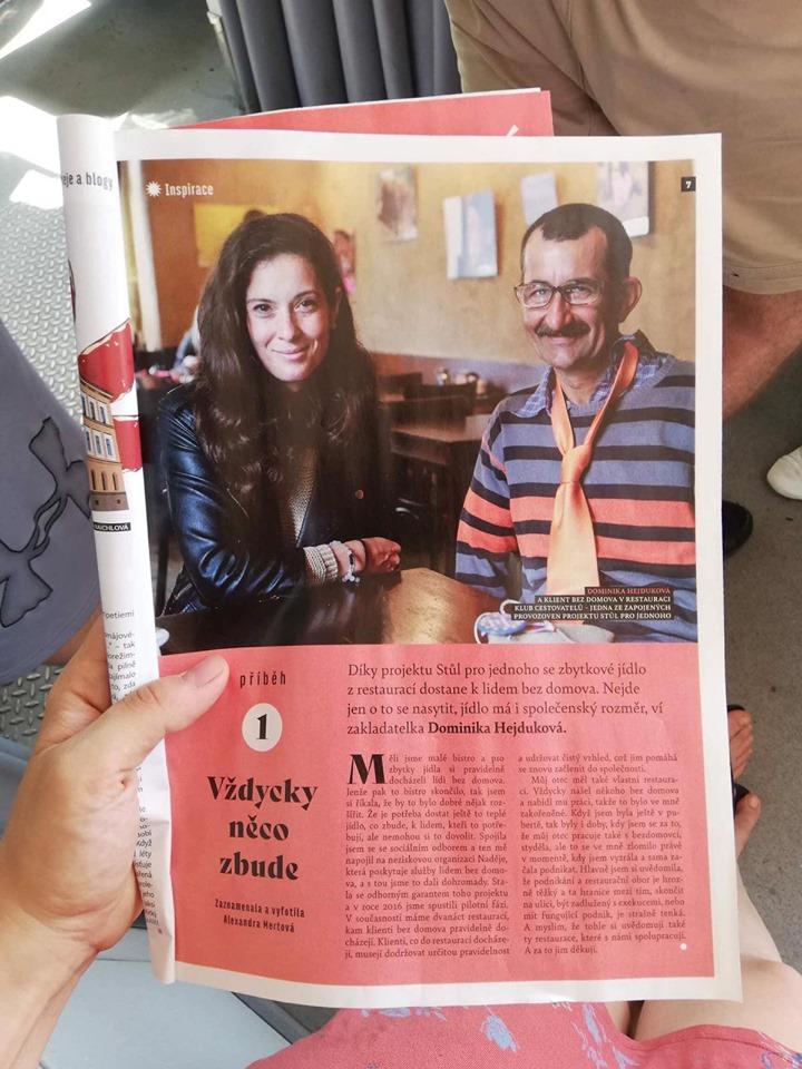 „To díky vám, vážení majitelé, vaší pohostinnosti a přívětivosti lidé bez domova, kteří jsou do projektu začleněni a chodí k vám na jídlo, méně strádají. Při návštěvě vašich restaurací si na vyloučení ze společnosti ani nevzpomenou a věřte nebo ne, pocit, že jsou někde vítáni, je pro ně velmi léčivý. Vážíme si také všech, kteří projekt Stůl pro jednoho jakkoli jinak podporují.“ říká Dominika Hejduková, iniciátorka projektu.