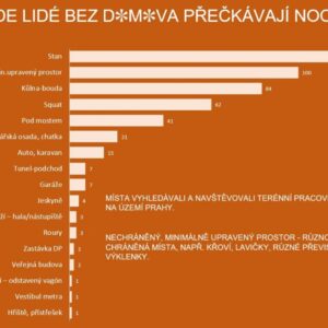 Začala také noční terénní služba. Pracovníci v ulicích Prahy vyhledávají lidi bez domova a nabízí jim teplý čaj a informace o zimních noclehárnách. V naléhavých případech bude služba moci využít středisko U Bulhara pro poskytnutí hygieny potřebnému člověku, anebo ho doprovodit do noclehárny s volnou kapacitou.