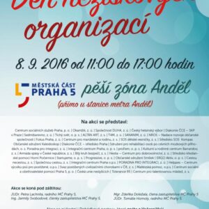 Ve středu 12. září bude Den neziskových organizací, které představí své služby, svá poslání, to jak pomáhají. Ani my nebudeme chybět. Jste zvědaví, co se u nás děje? A jak působíme na „pětce“? Tak přijďte, těšíme se na vás.