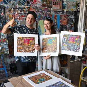 S Michalem jsme se sešli v jeho ateliéru v MeetFactory a setkání to bylo velmi příjemné. Provedl nás a ukázal širokou škálu svých děl, nad kterými jsme často stáli doslova v úžasu. Michal nás už v minulosti svými díly několikrát podpořil a my jsme moc rádi, že se pro to rozhodl i tentokrát. A víte proč? Protože „ulice pomáhá ulici“.