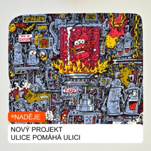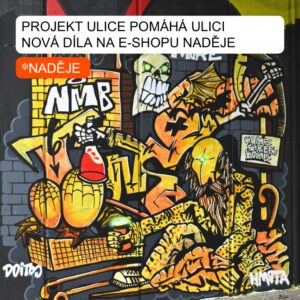 Unikátní projekt Ulice pomáhá ulici najdete na e-shopu NADĚJE. Koupí litografií a digitálních tisků od předních českých street art umělců celou částkou přispíváte na pomoc lidem, kteří v Praze přežívají ve veřejném prostoru bez střechy nad hlavou. Děkujeme, že prostřednictvím tohoto výjimečného projektu pomáháte spolu s námi.