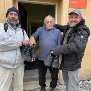 Už máme nakoupeno 258 párů bot a 1277 kusů oblečení. Kolegové z terénu a denních center je od prosince předávají lidem bez domova. Během února nás čekají poslední nákupy.