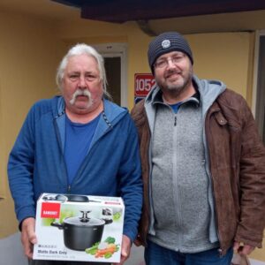 Prvním obdarovaným byl pan Jan z našeho azylového domu v Radotíně. Pan Jan si rád vaří, jen se o hrnec často musí dělit společně s dalšími spolubydlícími, a to je velmi nepraktické. Proto jsme požádali „Ježíška“, zda by nemohl Jana obdarovat hrncem. A podařilo se. A my z toho máme velkou radost. Bude moct bez omezení vařit a vymýšlet nové recepty.