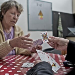 Paní Marie se vdala, s manželem neměli děti a byli dobře zajištěni. Manželství nebylo příliš šťastné, manžel ji někdy fyzicky napadal a byl závislý na automatech. Paní Marie začala hrát s ním a postupně se stala závislou. Se závislostí žila 20 let. Prvních 10 let zvládala hrát za své vlastní peníze, následně si musela začít půjčovat. Půjčovala si od rodiny, bankovních i nebankovních institucí, nakonec zneužila peníze z firmy, kde pracovala. V té době žila s přítelem, který o její závislosti nevěděl. Když zjistil, že vzala z firmy peníze, vyhodil ji z bytu. Poté žila u otce a automaty hrála dál. Otec kvůli tomu přišel o byt a odstěhoval se do domova důchodců. Paní Marie skončila na ulici. Automaty nehraje již asi rok, dochází do Sananimu na léčbu, kterou má určenu soudem. Musí splácet dluhy a škodu za trestnou činnost, kvůli které byla odsouzena. V azylovém domě bydlí poprvé v životě, v počátku jí byl pobyt hrazen z projektu Nejdřív střecha a byla ji poskytována potravinová pomoc, protože neměla žádný příjem.