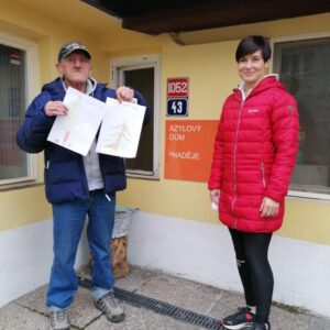 Pan M. byl po propuštění z nemocnice přijat do naší humanitární ubytovny v Michli a později do azylového domu na Žižkově. Ve spolupráci se sociální pracovnicí Amálkou si zde vyřídil stabilní příjem a zajistil odbornou lékařskou péči. Společně také hledali vhodné stálé bydlení. Tím se ukázal být Domov pro seniory Heřmanův Městec, kam minulý týden odjel za doprovodu Amálky a Alexe, pracovníka v sociálních službách, který mu u nás pomáhal s hygienou, přípravou jídla či s nákupy.