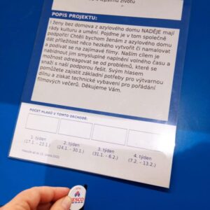 Cílem projektu „Filmem a barvou k lepšímu životu“ je ženám bez stálé střechy nad hlavou nabídnout smysluplné naplnění volného času a možnost odreagovat se od problémů. Svým hlasem pomůžete zajistit základní potřeby pro výtvarnou dílnu a získat technické vybavení pro pořádání filmových večerů.