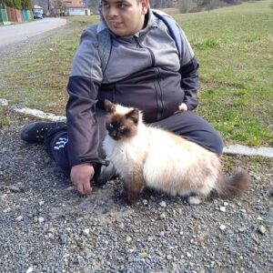 Je velmi společenský, rád pozoruje lidi. I když se zdá, že nevnímá, velmi dobře ví, co se kolem něj děje. Miluje výlety, procházky a obchody, protože ví, že si může vybrat jednu sladkost. Vždy miloval vodu – koupání. Teď to má rozdělené do etap. Buď je ve vaně 5x denně, nebo se naopak nechce koupat vůbec. A velmi má rád jídlo. Nebylo to takto ale vždy. Pokaždé to jsou extrémy. Dříve jsme ho museli do jídla nutit a jedl jen asi 4 druhy jídla. Dnes máme opačný extrém, kdy sní, co může a také je to znát na jeho váze. Lednici zamykáme, protože je schopen sníst všechny jogurty nebo uzeniny najednou.