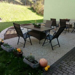 Součástí denního stacionáře na Sychrově je poměrně rozlehlá zahrada, která umožňuje nejen klidné posezení, ale v případě příznivého počasí i nejrůznější venkovní aktivity. Nerovný travnatý povrch, který lidem bez poruchy hybnosti nijak nevadí, se zato stává oříškem pro lidi využívající invalidní vozík i jiné kompenzační pomůcky. Proto, abychom nemuseli i v krásných letních dnech trávit čas pouze v interiérech stacionáře, jsme přemýšleli, měřili, počítali a koncem loňského roku jsme oslovili vsetínskou firmu Austin Detonátor s participací na projektu zahradní terasy na Sychrově.