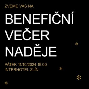 Tento rok se akce opět koná v Interhotelu Zlín (dříve Moskva) a to 11. 10. 2024 od 19 hodin a přináší novinku – program ve dvou sálech, v nichž Vás čeká ještě více zábavy! K poslechu a tanci zahraje již tradičně oblíbený SHOWBAND Pavla Březiny a GAUDEON BAND. Večerem Vás provede moderátor Jakub Malovaný. Můžete se těšit na Prosecco stěnu a Fotospin 360 od Proseccovan.cz, barmanskou show Tomáše Vančury a bohatou tombolu (zlatou cihličku, wellness pobyty, poukaz na focení, atd…). Vstupenky si můžete rezervovat e-mailem na zlin@nadeje.cz nebo telefonicky na čísle +420 771 261 160. Přijďte podpořit skvělou věc a užijte si večer plný hudby, zábavy a dobré nálady. Lístky rychle mizí, proto neváhejte s rezervací! Těšíme se na vás!