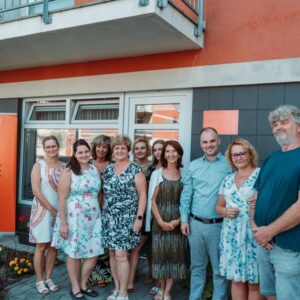 Oslavenci z chráněného bydlení slavnostně rozkrájeli dort, nad kterým se nakonec potkala spousta lidí – pracovníků stávajících i bývalých, klientů, sousedů, partnerů, rodin nebo jen kolemjdoucích, kteří využili příležitosti a nahlédli do našich služeb. Snad se nám podařilo ukázat a přiblížit co, jak a proč děláme, že je to práce důležitá a přínosná. A že zase za rok se bude na co těšit.