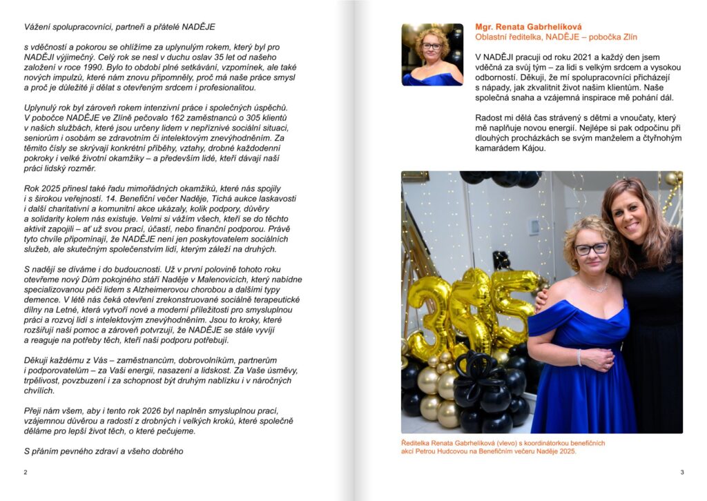 Nové vydání občasníku Laskavost je plné emocí, odborných vhledů i naděje. Otevíráme v něm dveře do našich služeb a sdílíme s vámi významné milníky – od získání certifikátu paliativní péče až po atmosféru festivalového půlmaratonu. Dozvíte se také, jak vypadá život pod „jednou střechou“ v našem novém zázemí a co pro nás znamená 35 let existence NADĚJE.