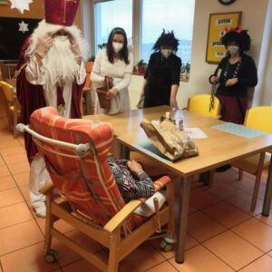 4. 12. 2020 zavítal do Domu pokojného stáří Mikuláš i se svou družinou. Rozdával laskominy dia i naprosto „plnotučné“, ovoce.
