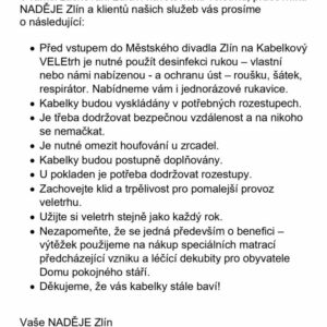 V rámci zachování zdraví návštěvníků veletrhu, pracovníků NADĚJE Zlín a klientů našich služeb vás prosíme o následující:
