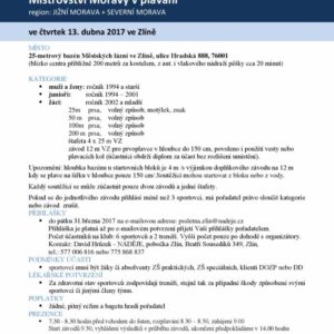 Český svaz mentálně postižených sportovců a SK Berani Naděje Zlín a NADĚJE Zlín pořádají a srdečně vás zvou na Mistrovství Moravy v plavání.