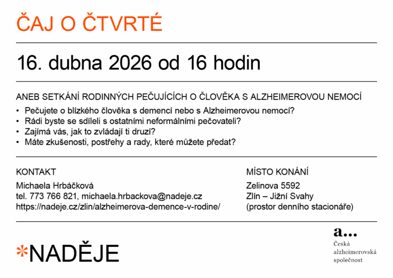 - Čaje o čtvrté – pravidelná neformální setkávání rodinných pečujících